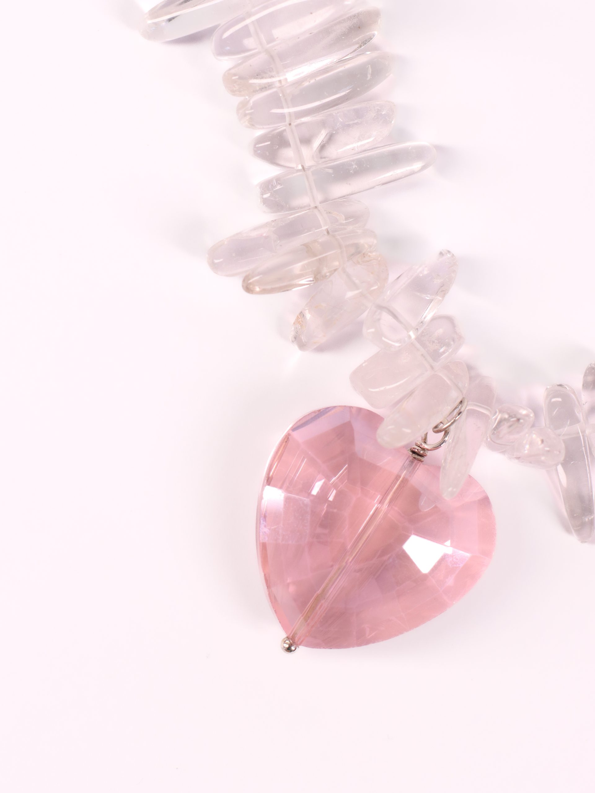 Check out our Crystal Hearts Necklace, a piece that’s sure to be a favorite! This necklace features a big, beautiful crystal heart pendant and chunky acrylic beads. It’s bold and elegant, perfect for standing out.